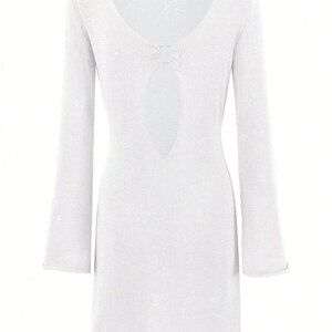 White Women's Sexy Metallic Ring Hollow Deep V-Neck Knit Wrap Knit Mini Dress