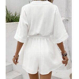 White Women's Summer Solid Color Shirt Romper /Jumpsuit beachy wedding vacay