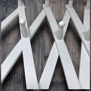 White Wood Accordion Farmhouse Style 17 Peg Expanding Cap Hat Wall Rack Cottage