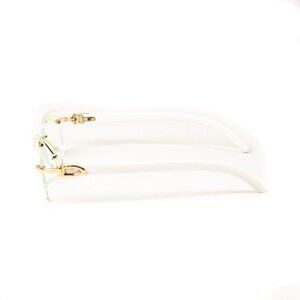 Retro Vintage White Wood Arm Trendy Style Designer Rimless Clear Lens Men’s Women Rectangular Gold Frame Unisex Square Frameless Clear Tint Rectangle Hip Hop Buffs Eye Glasses