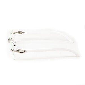 Retro Vintage White Wood Arm Trendy Style Designer Rimless Clear Lens Men’s Women Rectangular Silver Frame Unisex Square Frameless Clear Tint Rectangle Hip Hop Buffs Eye Glasses