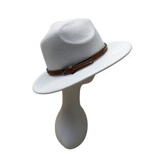 Stylish and versatile, this white hat adds sophistication to casual or formal looks. The brown band offers a refined accent.