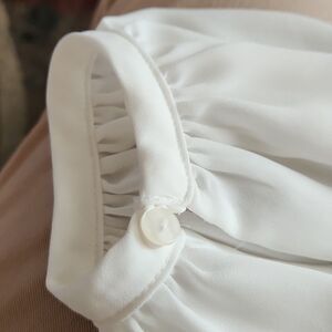 Women's size large Worthington white lightweight long sleeve blouse. Pretty lace accents on the sleeves. Button cuffed puffy sleeves. Pleated neckline. Top is airy and flowy. Excellent used condition. Pit to pit measures about 22".