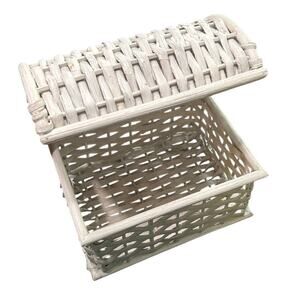 White Woven- Mini Table Top Chest with Lid- 8x6 in some wear- whimsigoth 90s