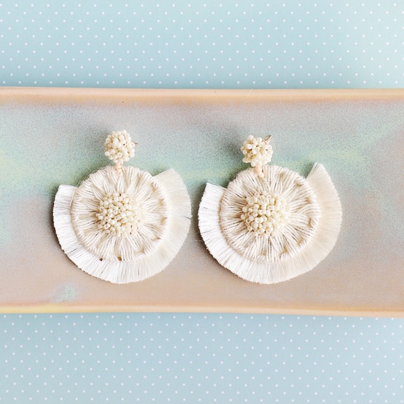White Woven Tassel Earrings with Beaded Detailing | Perfect for summer!