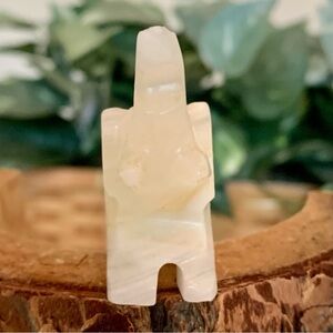 1 3/4" x 1 1/2" White & Yellow Banded Calcite All Hand Carved Elephant Figurine.