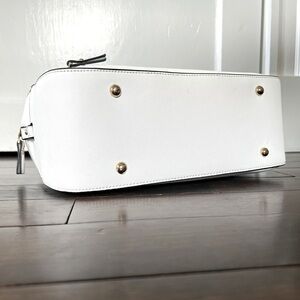 White Rigid Zara Handbag. Exposed Zip Detail on Front. External Pocket. Zip closure. Outer Shell 100% Polyurethane. Lining 100% Polyester.