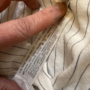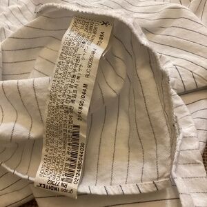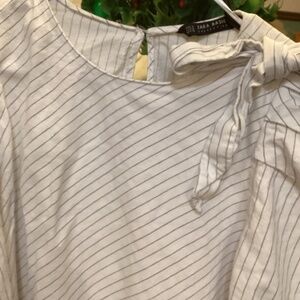 White Zara Blouse with Blue Pin Stripes, Puffed Long Sleeves and Bow on Sholuder
