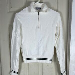 White Zip Up Sweater with Textured Fabric