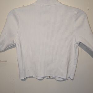 Stylish white ribbed top with a zip-up front. Perfect for casual wear.