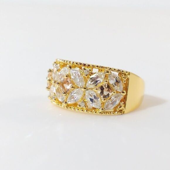 - There are twelve 2.5x5mm marquis cut genuine white zircon gemstones and three 3mm cushion cut yellow topaz gemstones.