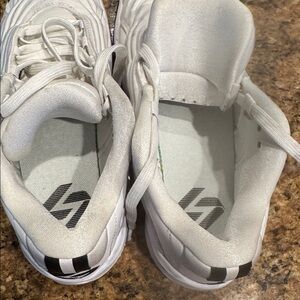 Stylish white and black athletic sneakers. Perfect for sports and casual wear.