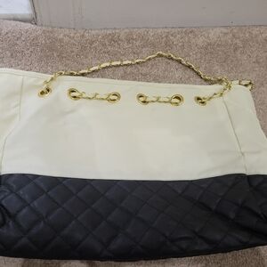 White and Black Hangbag with Chain