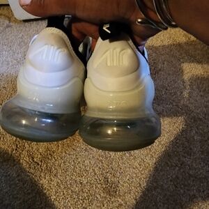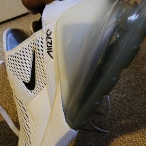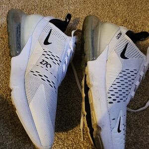 Stylish white sneakers with black patterns. Perfect for casual wear. Worn only a few times. This shoe runs small and would probably fit someone who wears a 9.5 shoe. Please feel free to ask questions. Thanks for looking.