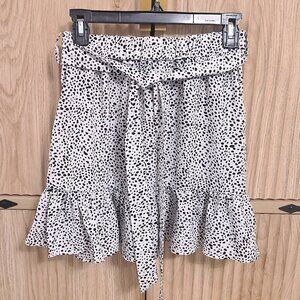 White and Black Polka Dot Ruffle Skirt – Size Small – Adjustable Tie Waist