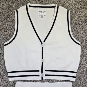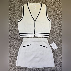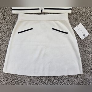 Elegant white sweater vest with black trim with a matching skirt by Willow & Wind. New with tags. Both size Medium. Both are a light sweater material perfect for any occasion. Fabric has great stretch!