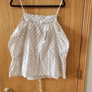 White and Blue Smocked Camisole with Tie Front