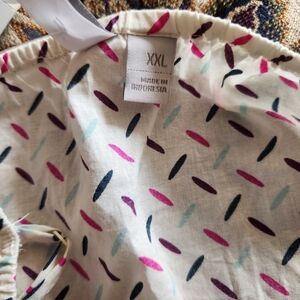 This stylish camisole features a smocked design and a charming tie front, offering a chic and comfortable fit. The white, blue, purple and hot pink color combination adds a fresh touch, making it perfect for casual outings or layering. Its lightweight fabric ensures a breezy feel, ideal for warm weather.