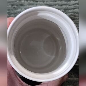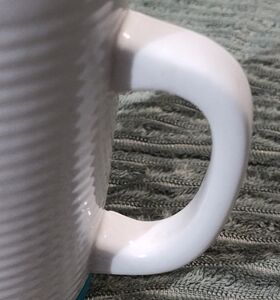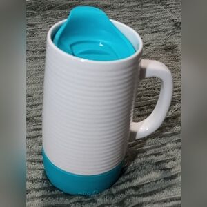 Enjoy your favorite beverages on the go with this stylish white and blue travel mug. Its sleek design and vibrant colors make it a perfect companion for your daily commute.