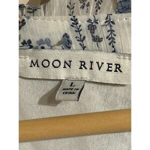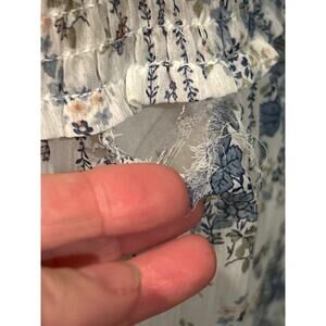 White and Blue Whimsical Floral Prairie Maxi Dress