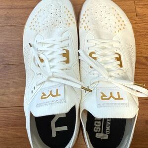 Sleek TYR sneakers in white with gold accents. Perfect for casual or athletic wear.