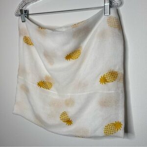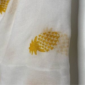 White and gold pineapple print infinity scarf. Lovely sheer fabric with gold shimmer pineapple print. Worn a few times during our fertility journey, I hope it brings you luck!