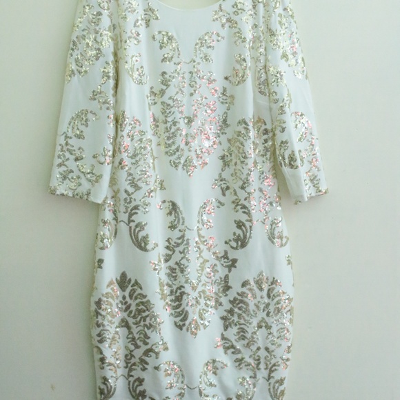 White and Gold Sequence Bodycon Dress