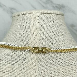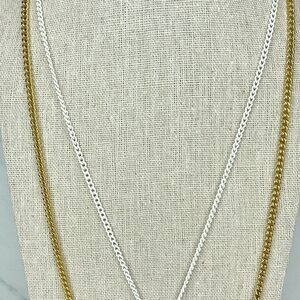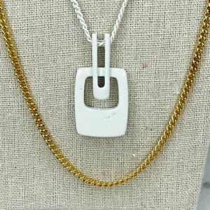 White and Gold Tone Double Strand Pendant Chain Link Necklace