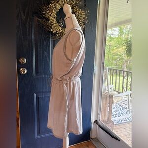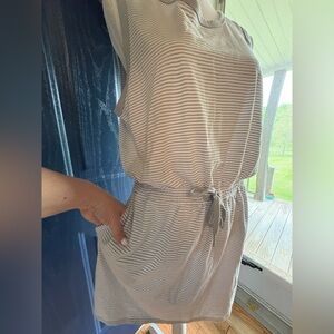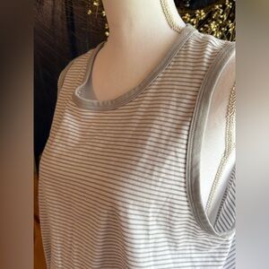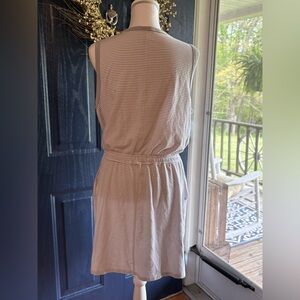 White and Gray Sleeveless Scoop Neck Sundress with Pockets. Size L NWOT