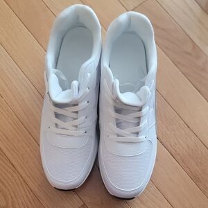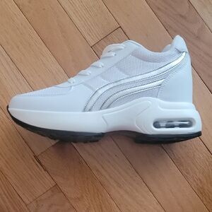 Super light, like feather. Stylish white and silver detail sneakers with a sleek design. Perfect for casual wear. It came in bag. No box.