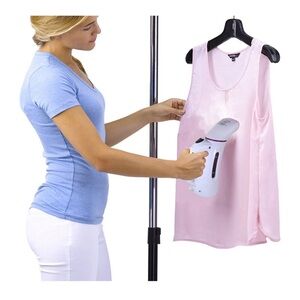 Efficiently remove wrinkles with the handheld steamer. Its sleek white and green design makes it a stylish addition to your home essentials.