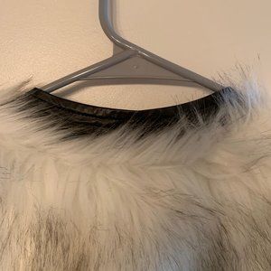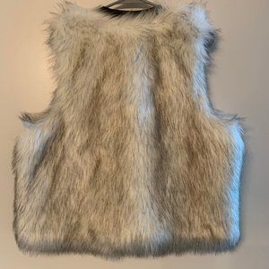 This faux fur vest is white and grey with some warm tones throughout. The faux leather trim at the collar really makes it look special and classy. I wore this in NY a number of times to events and dinners, no one would have guessed it was from Target!