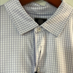 This polo shirt features a smooth, solid color fabric in white and gray, offering a timeless and versatile look. Its short sleeves and traditional collar make it suitable for various occasions, ensuring comfort and style. The shirt's pristine appearance adds a touch of sophistication to any outfit.