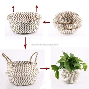 White and Natural Seagrass Belly Basket - decorative storage basket