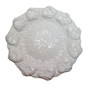 This adorable bunny rabbit serving plate is perfect for adding a touch of charm to any occasion. The white and pink design is sure to delight. Ideal for serving snacks, appetizers, or desserts. It measures 10" and is in great condition.