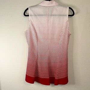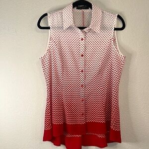 White and Pink Sleeveless Button Down Blouse with Dress Shirt Collar