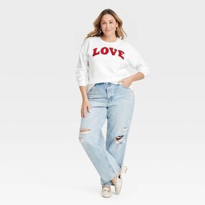 Cozy up in this stylish white sweater featuring a bold red 'Love' design. Perfect for casual outings and adding a touch of warmth to your wardrobe.