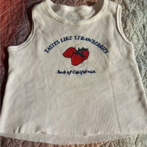This white and red tank top features a charming strawberry motif, perfect for adding a playful touch to your wardrobe. Made from a comfortable ribbed fabric, it offers a casual and stylish look. Ideal for warm days, this top is a versatile addition to any outfit.