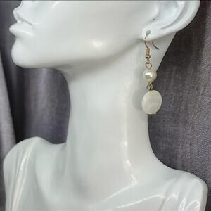 White and Silver Drop Earrings, 2" Long, 0.5" Wide, Summer Style