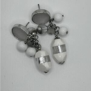 These clean and sleek white cluster earrings are styled with the perfect touch of silver-tone shimmer.