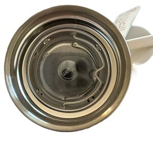 Stay hydrated with the stylish water bottle. Featuring a sleek white design with a natural tan bamboo base, this bottle is perfect for on-the-go use. Enjoy your favorite beverages in style.
