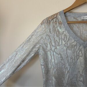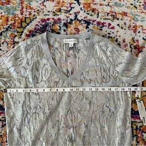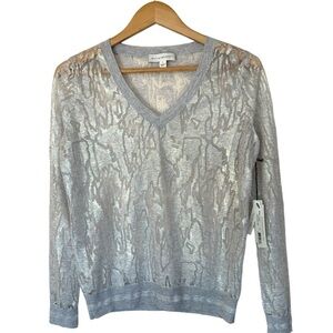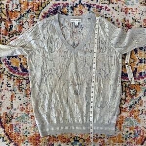 White and Warren Italian Yarn Sheer V-Neck in Oyster Splash Size S