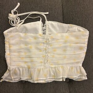 White and Yellow Ruched Halter Top