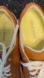 Stylish women's shoes with a white exterior and yellow interior. Perfect for any occasion.