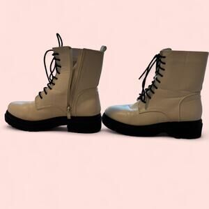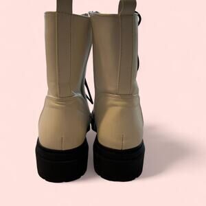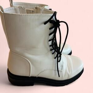 black and white, leather, combat style, lace-up, rugged, chunky sole, edgy, grunge, unisex, streetwear