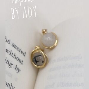 White and black needle rutile gold stud earrings