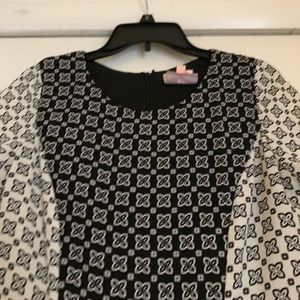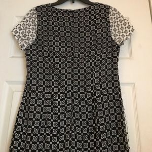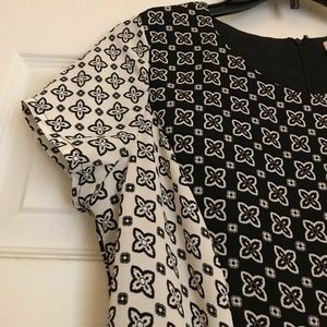 White and black shift dress. Back zipper and lining. 100% polyester