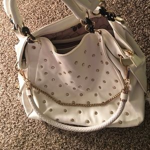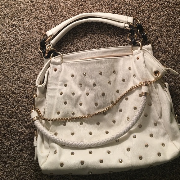 Beautiful white purse with gold jewels and chain 👜