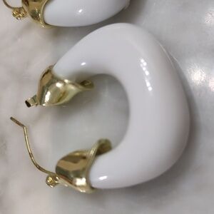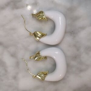 White and gold rounded square hoop earrings