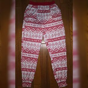 White and red Victoria's Secret PINK Christmas loungewear sweatpants